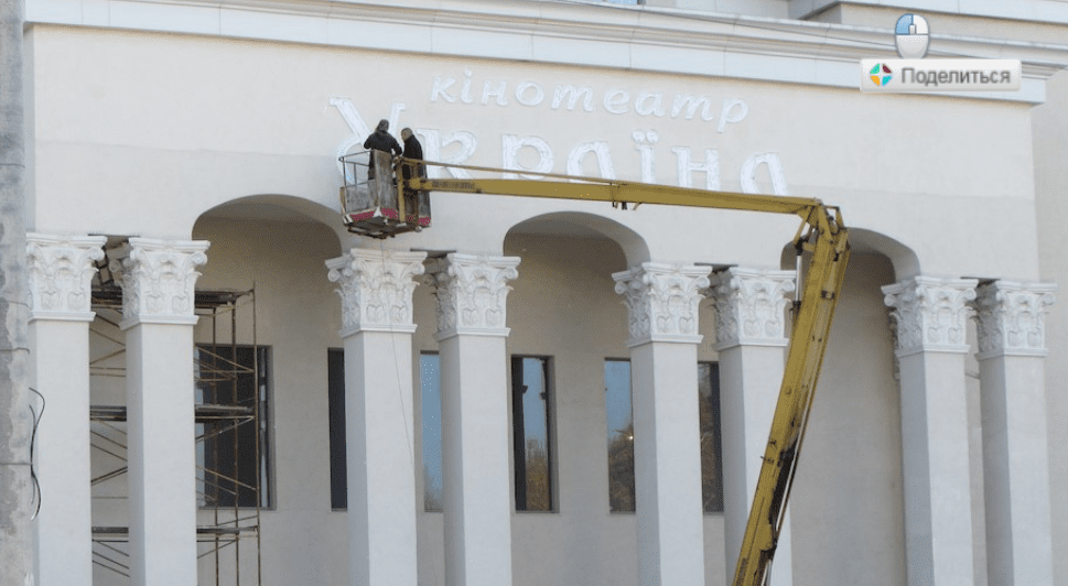 Минали роки, кінотеатр зношувався. До середини 2010-х років будівля кінотеатру значно занепала. До жовтня 2019 року на його фасаді від повної назви закладу культури залишився фрагмент напису: «оте-» та «-раї-». Треба було дочекатися 18 жовтня, коли до фасаду пригнали автомобіль із вежею, щоб повернути кінотеатру “статус-кво” – “Кінотеатр Україна”.